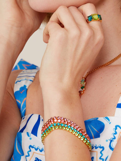 18K gold-plated tennis bracelet designed with round-cut crystals.