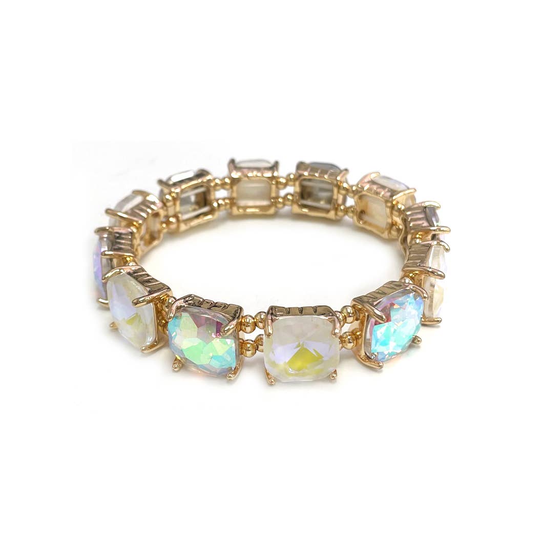 Cushion Cut Glass Crystal Linked Stretch Bracelet