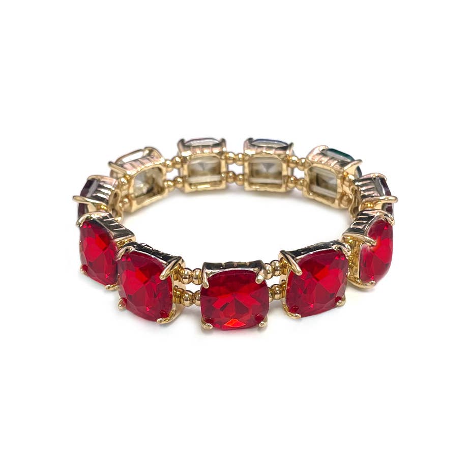 Cushion Cut Glass Crystal Linked Stretch Bracelet