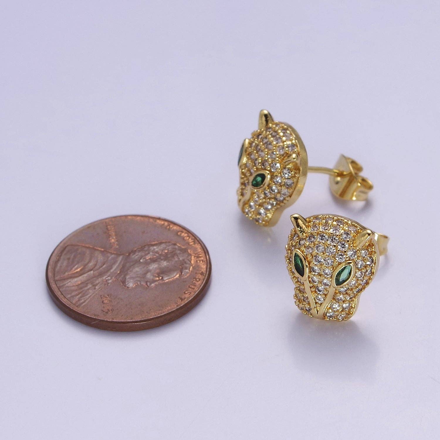 Gold Pave Crystal Leopard Head Ear Stud Earring T-415 T-416: Silver