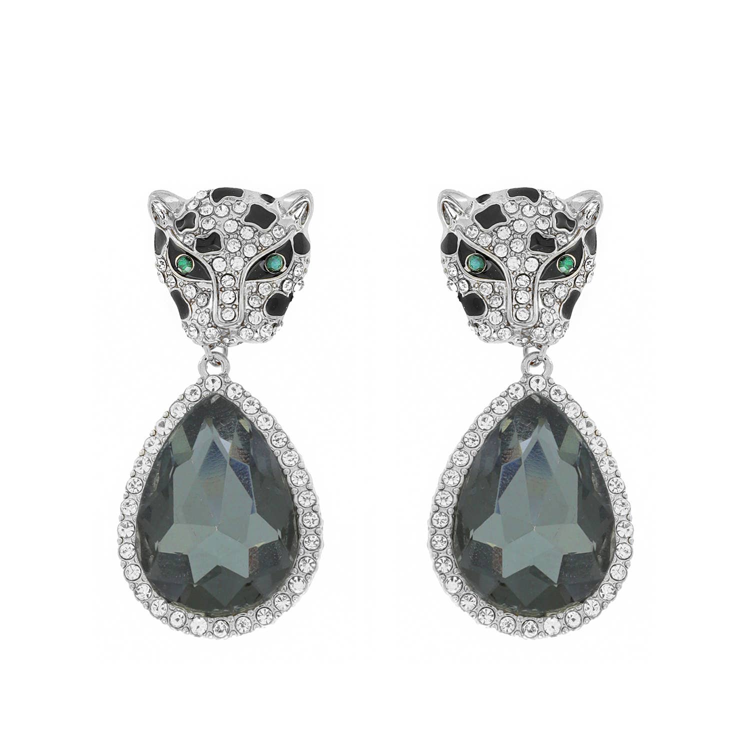 Puma Panther Teardrop Gem Dangle Earrings: Black