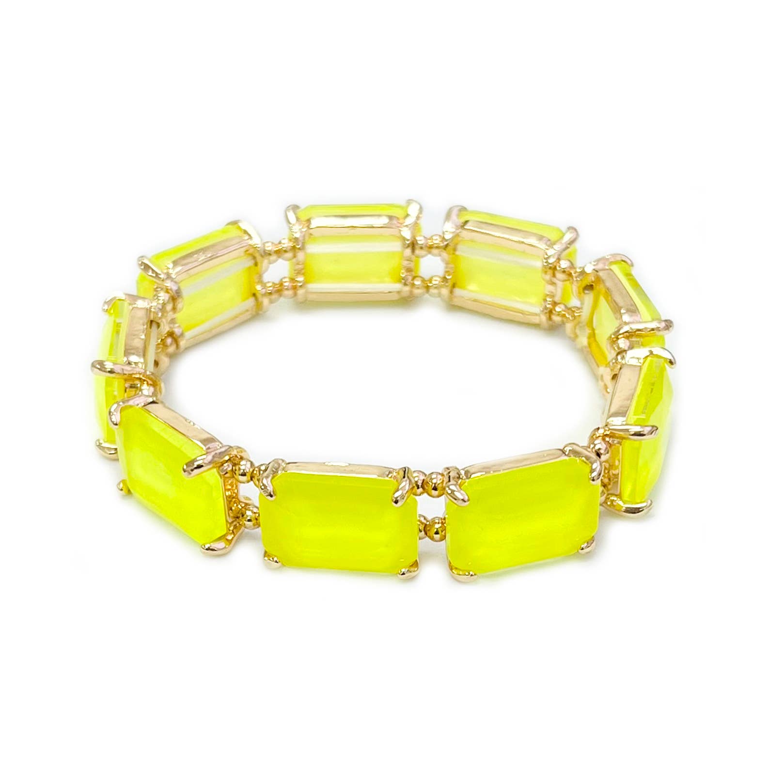 Rectangular Glass Crystal Linked Stretch Bracelet