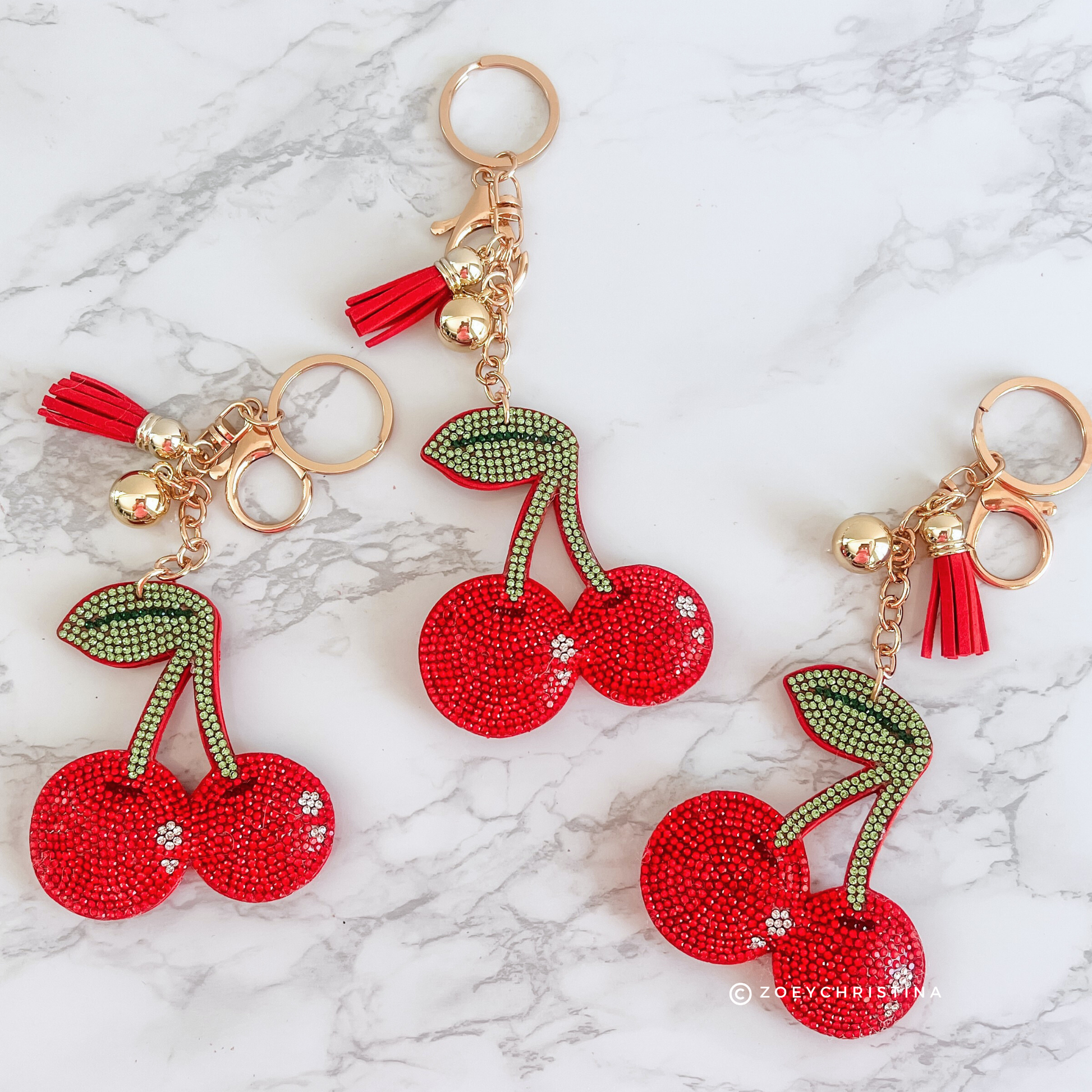 Rhinestone Cherry Keychain – Sparkly Fruit Accessory for Bag