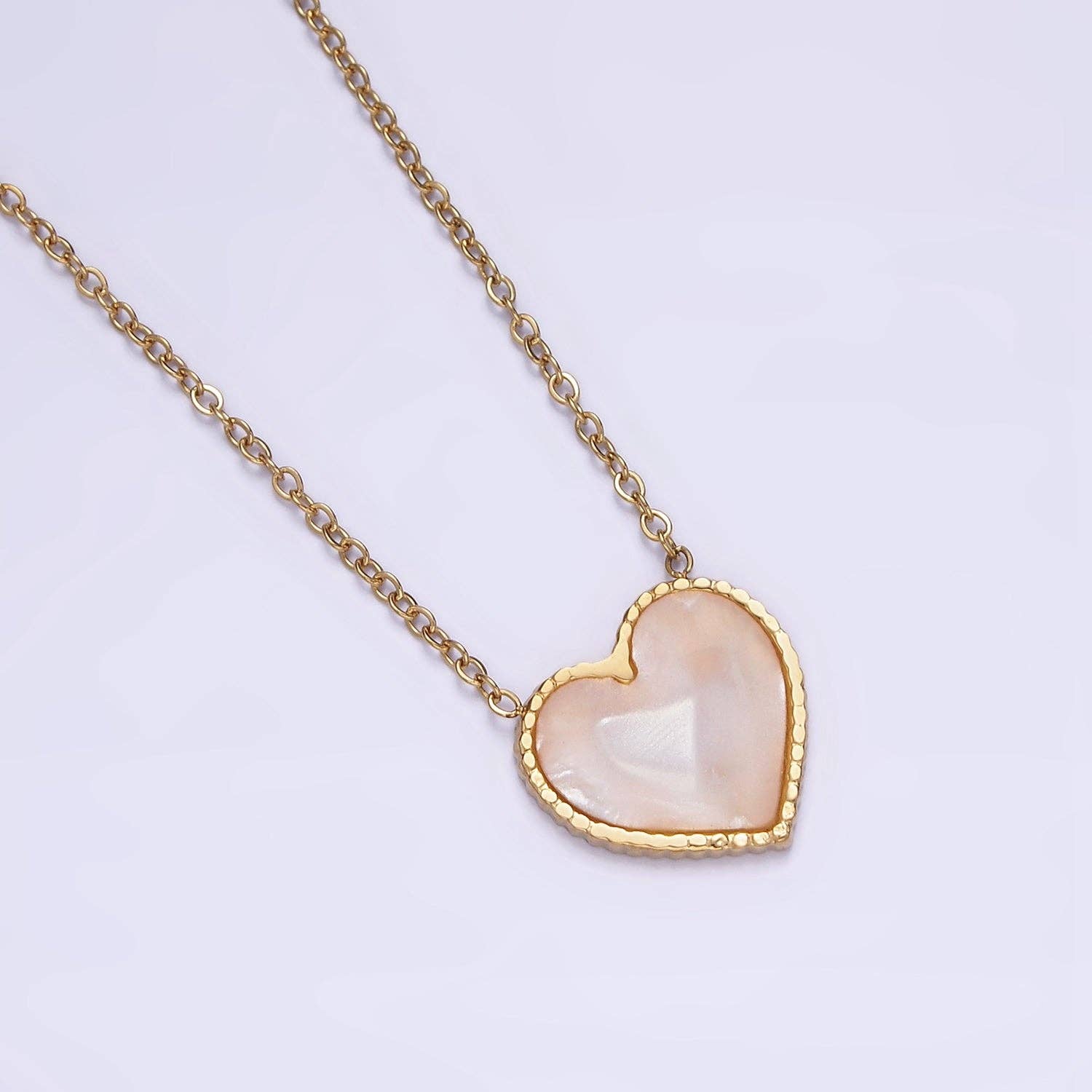 Stainless Steel Shell Pearl Heart 17 Inch Cable Chain Necklace